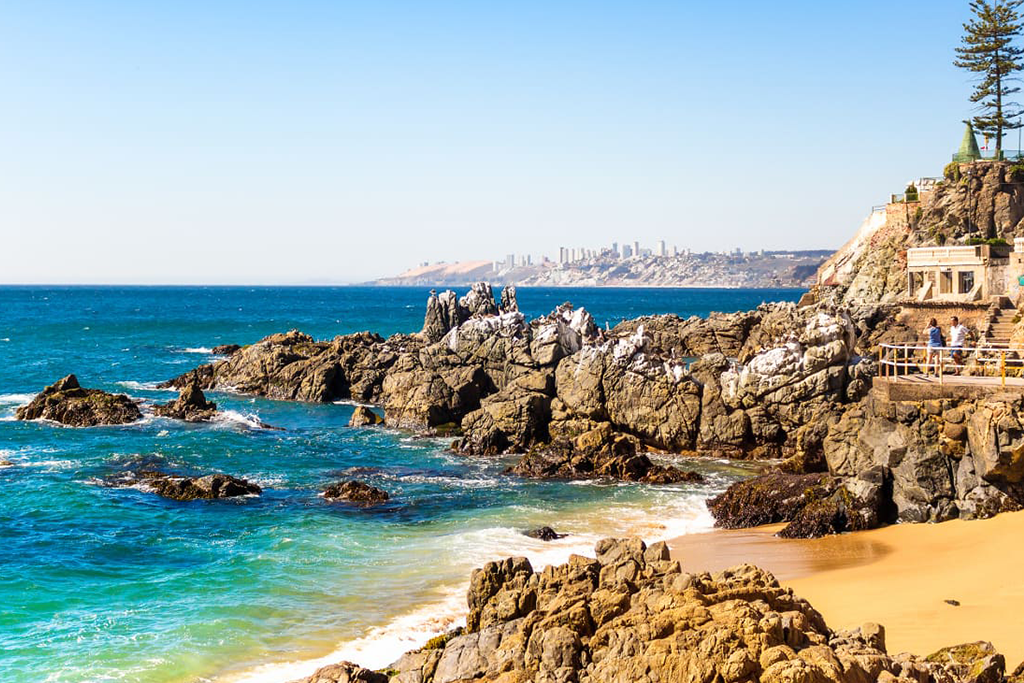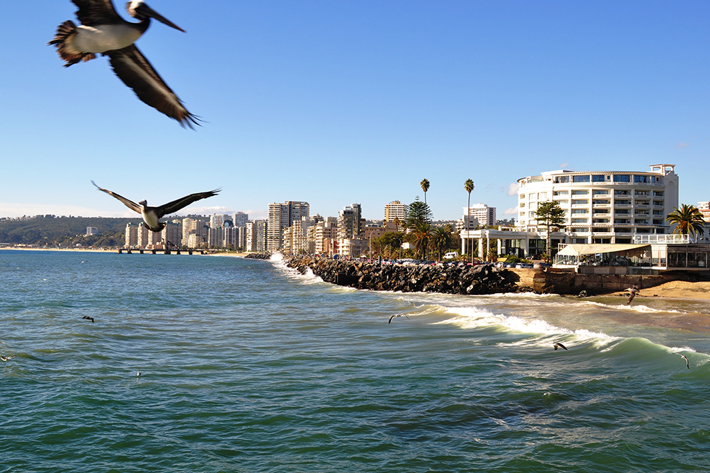 De Valparaíso, seguirá viagem até Viña del Mar, uma cidade mais moderna e charmosa, conhecida como a Miami do Chile. Suas praias são lindas e será possível vê-las cheias em dias de final de semana, quando chilenos e turistas a escolhem para curtir um pouco de sol e brisa marinha proporcionados pela estação. Conhecerá o seu cartão portal, o Relógio de Flores, construído para a Copa do Mundo, realizada no Chile em 1962, e que teve Viña del Mar como uma de suas sedes.